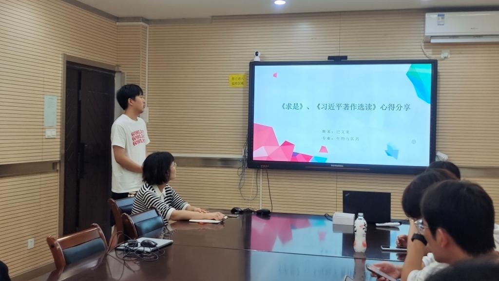 为学习贯彻习近平新时代中国特色社会主义思想主题教育,开展支部党员读书学习主题活动,6月9日suncitygroup太阳集团官方网站研究生第三党支部于生科楼C2011举办读书感悟分享主题活动。研究生辅导员、党支部书记孙冬丽及支部10名研究生党员、4名预备党员参与此次活动。此次活动由顾梦圆、杜高峰、巴文豪、余雅琪4位同学进行读书感悟分享。