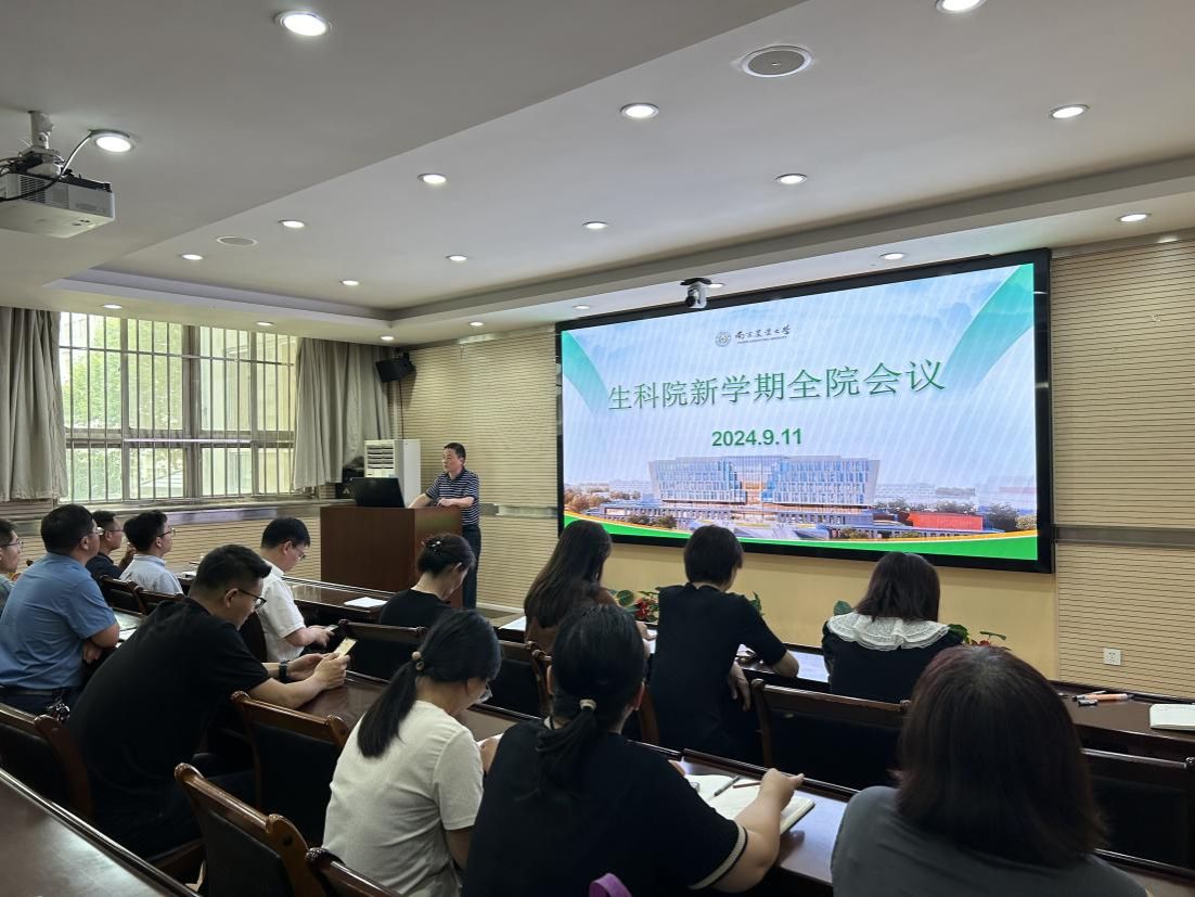 9月11日下午3点,在生科楼会议室召开了suncitygroup太阳集团官方网站新学期工作会议,学院领导班子成员出席会议,会议由院长蒋建东主持,全体教职工参加。